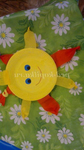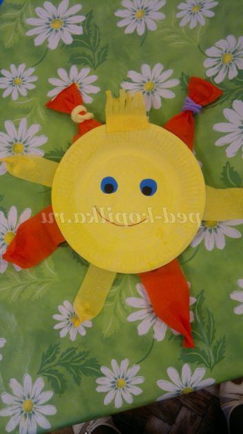 і проклеюємо сонечку ротик, тепер воно у нас радісне весняне сонечко.