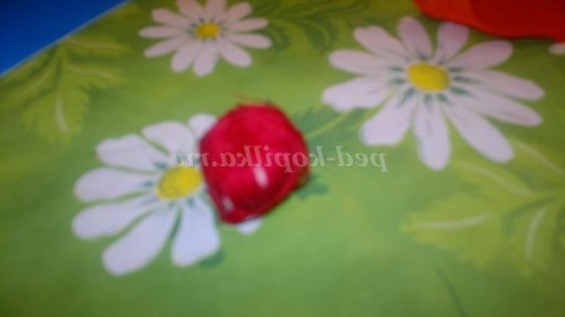 Від мотка червоних ниток Відрізів шматок приблизно шість - сім сантиметрів.