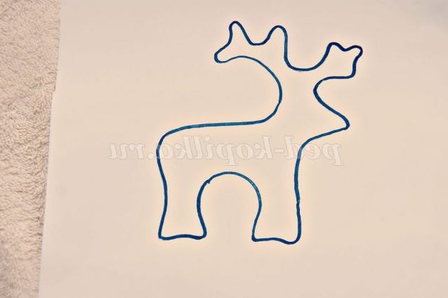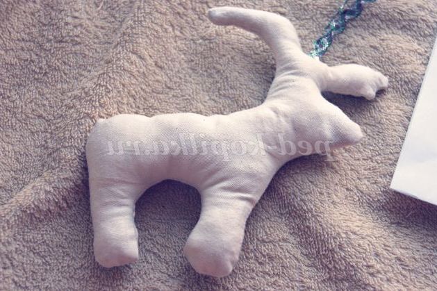 Після цього, прострочуємо на машинці іграшку і вирізаємо нашого отриманого оленяти, відступаючи від контуру близько 5 мм. Не забудьте витягнути стібки.