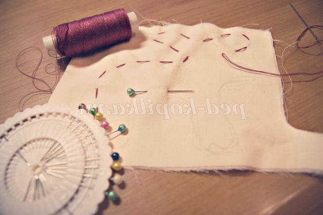 відрізок тканини навпіл лицьовою стороною всередину, а зверху покласти викрійку і обвести олівцем по контуру. Я це роблю від руки і на око.
