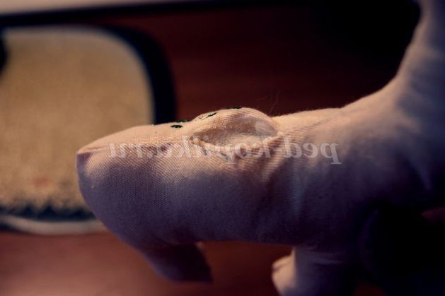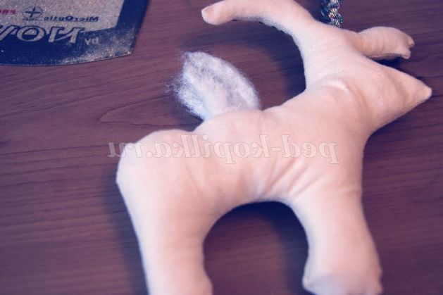 3 крок. Вивертаємо наш виріб і набиваємо синтепоном. Зашиваємо отвір потайним швом.