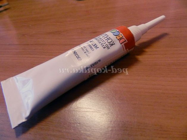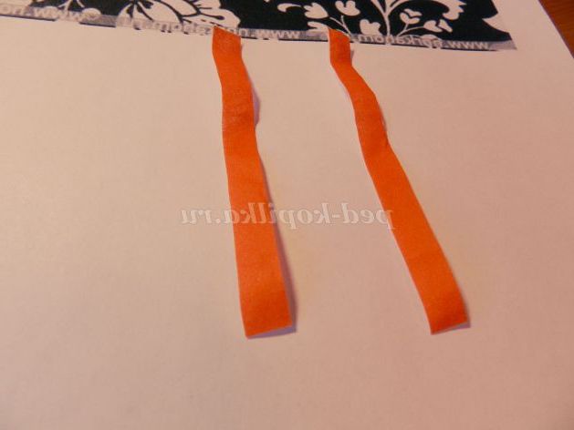 3 крок. На заготовці з червоними смугами, я зробила хвилясті лінії контуру білого кольору і міді. Також вибрала елементи візерунка з серветки. Динний візерунок можна з легкістю знайти і в Інтернеті, роздрукувати і вирізати. Для білої же частині я взяла дві помаранчеві смужки. Декоруємо нашу заготовку.