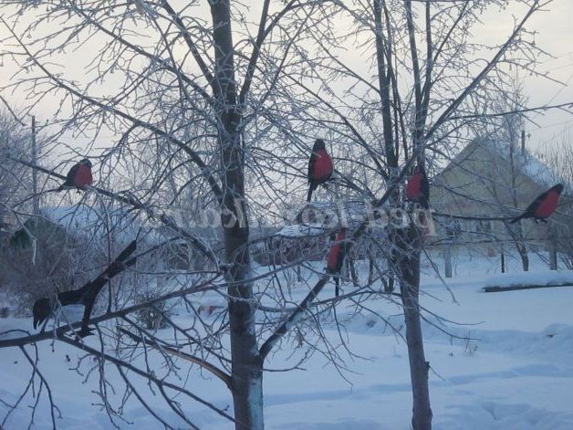 Доброго дня шановні колеги! Хочу поділитися своїм досвідом оформлення ділянки взимку. В рамках проекту "Зимуючі птахи", я вирішила оформити дерева на ділянці і посадити на них птахів. Для цього з картону я вирізала птахів, розфарбувала їх, обклеїла скотчем і прикріпила до деревами. У мене вийшли снігурі та сороки. Я боялася, що пташки розтопляться від снігу, але цього не сталося і вони просиділи на гілках до самої весни.
