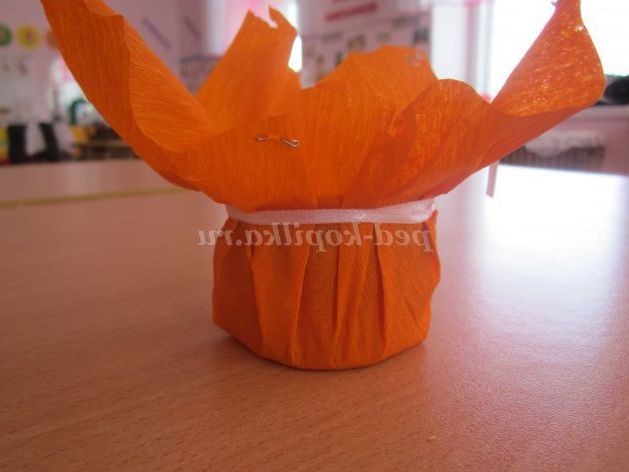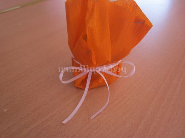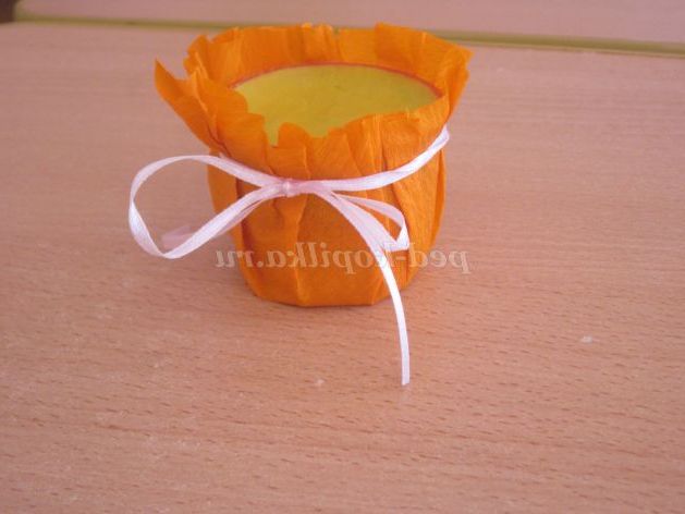 Розкриваємо краю паперу і розподіляємо рівномірно складочки навколо баночки