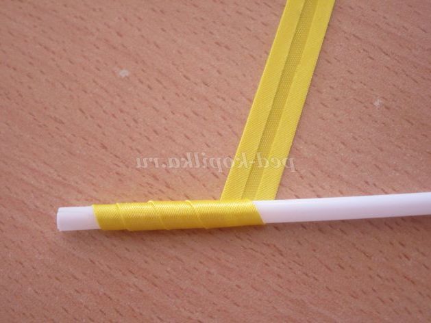 Під надрізом приклеюємо з допомогою клею для стельової плитки косу бейку