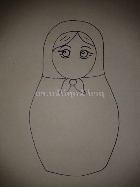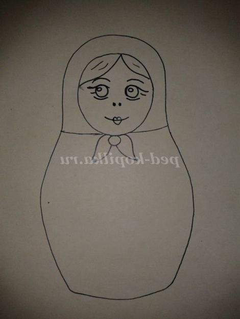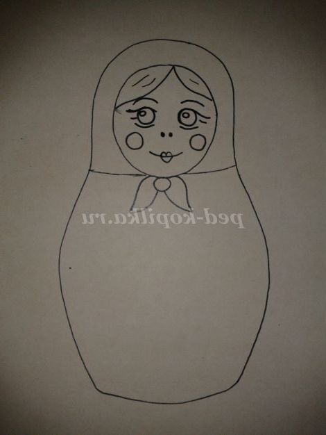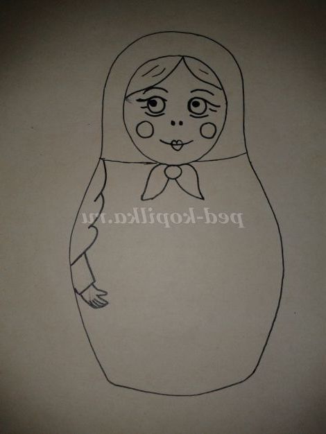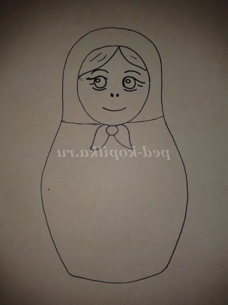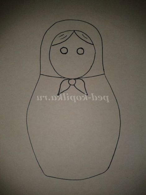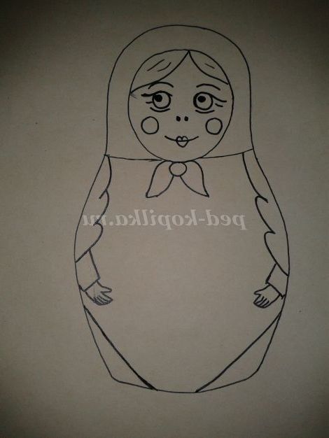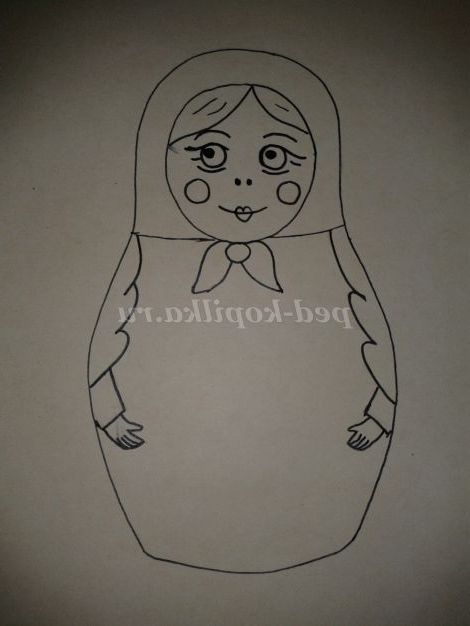 Вихователь: А тепер подивіться, як матрьошку ми будемо малювати.
