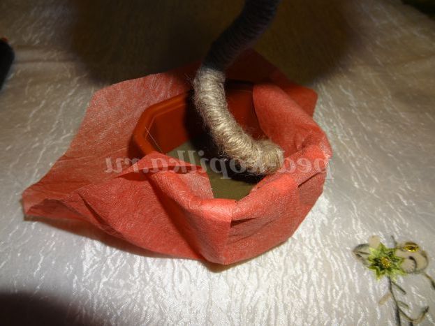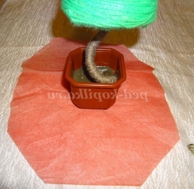 9. Стовбур ялинки обмотуємо шпагатом і закріплюємо за допомогою клею в кашпо.