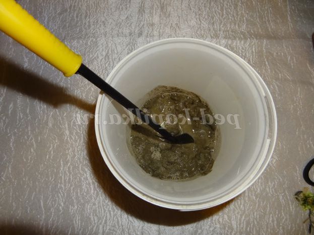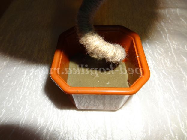 10. Закріплюємо стовбур дерева з допомогою цементної суміші або гіпсу в кашпо (можна використовувати тільки клей). Для цього потрібно розвести цементну суміш водою і перемішати.