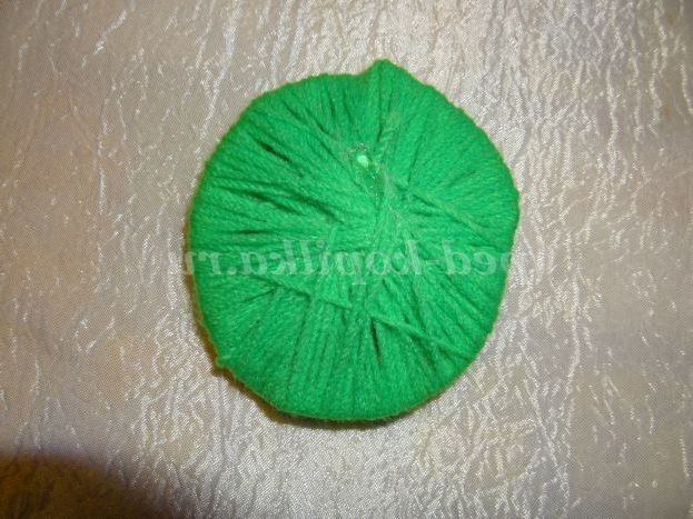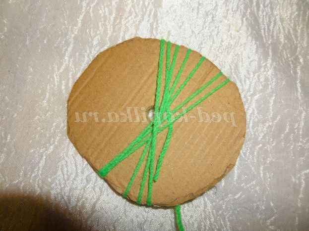 6. Вирізаний круг з гофрокартону обмотуємо зеленими нитками.