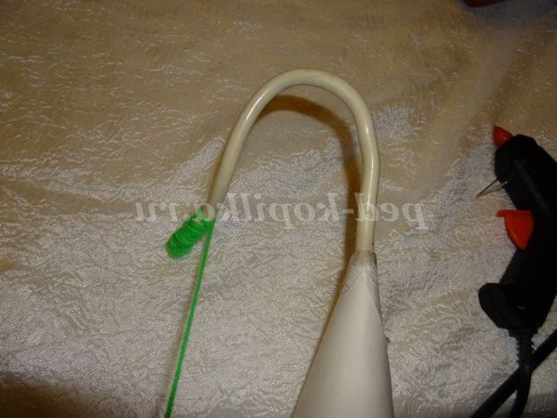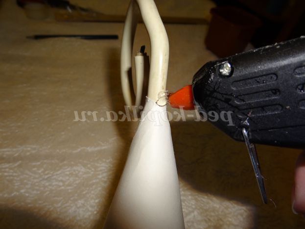 З допомогою клей-пістолета приклеюємо кабель до верхньої частини конуса.