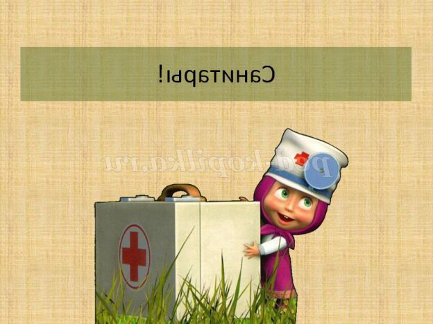 У центр кабінету ставляться два стільці. На конкурс запрошуються по два учасники від кожної команди. Один з них сідає на свій стілець, і буде грати роль пораненого. Другі будуть санітарами. Санітари одягають білі халати на руку одягаються пов'язки з принтом «Червоний хрест». В руки беруть бинт.