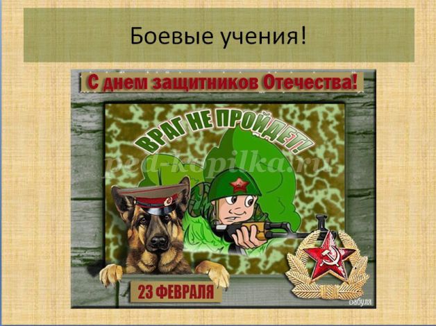Ведучий: Дорогі наші хлопці! Сьогодні, мабуть, один з небагатьох днів, коли ви отримуєте законне право приймати від нас вітання, подяку, і, звичайно ж, подарунки. Сьогодні в Росії ми відзначаємо свято - День Захисника Вітчизни.