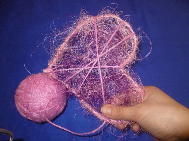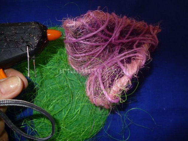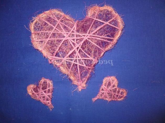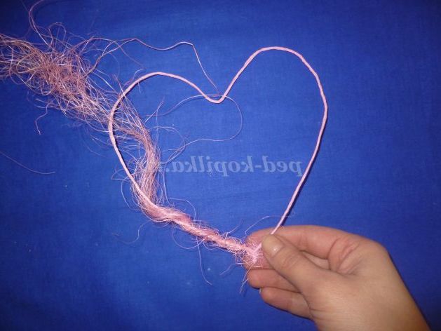 Декоруємо сердечка волокна сизалю та пряжею відповідного кольору.