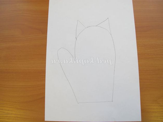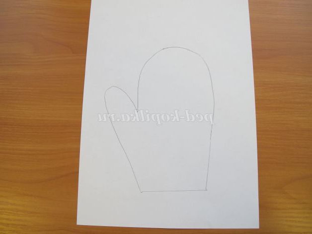 Беремо картонну рукавичку і обводимо її по контуру на аркуші паперу простим олівцем.