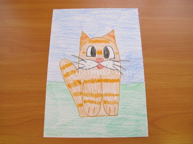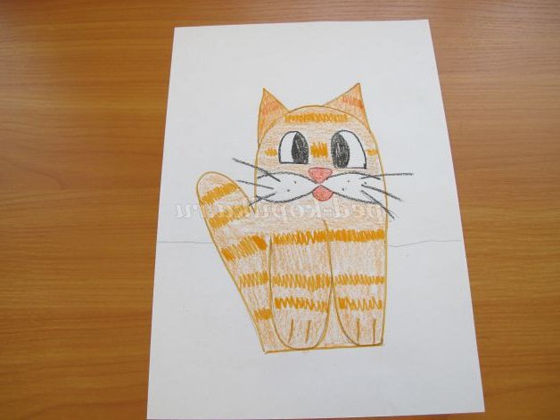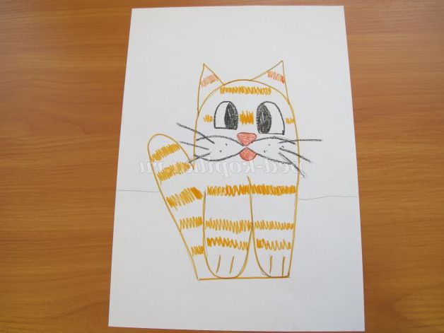 Фломастером потрібного кольору намалюйте кошеняті смужки.