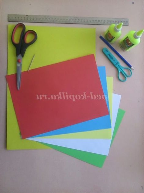 - Папір для квілінгу жовтого, зеленого, синього, червоного, білого кольору, двосторонній картон для рамки.