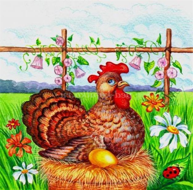 Де і коли сталося таке? Мишка розбила яйце золото. Плакав дід, плакала баба, тільки кудкудакала...(малюнок 2)