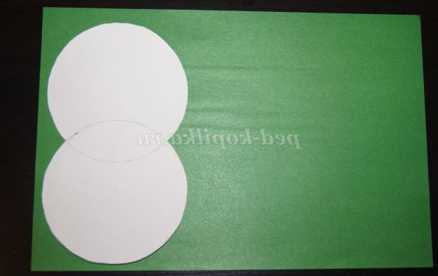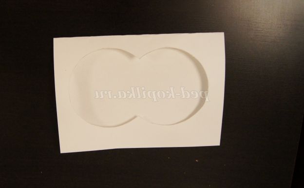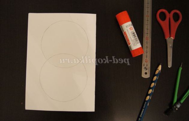 1. Звертаємо аркуш картону навпіл, з допомогою циркуля малюємо на верхній частині листівки два кола, що перетинаються між собою у вигляді вісімки.