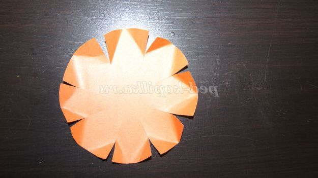 7. Розрізаємо пелюстки по лінії до середини і загинаємо куточки на кожній пелюстці.