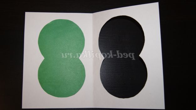 4. Вирізаємо зелену вісімку і приклеюємо її на внутрішню частину листівки.