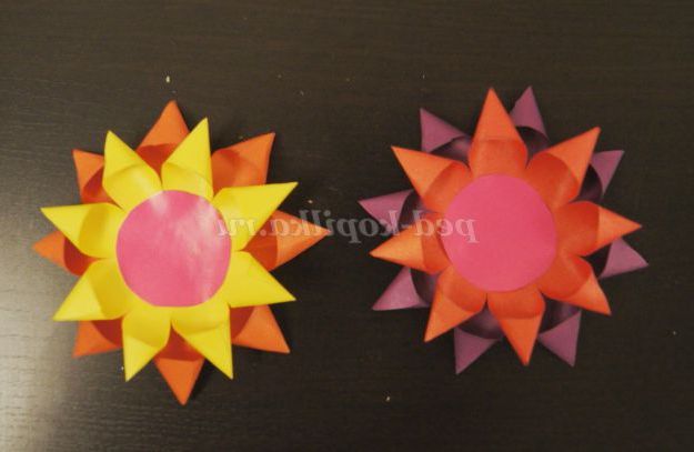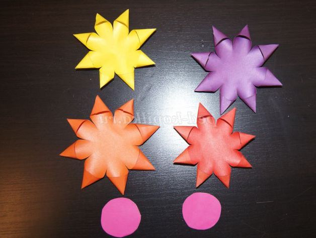 9. Збираємо квіти. Вкладаємо маленькі квіти великі, склеюємо, приклеюємо серединку.
