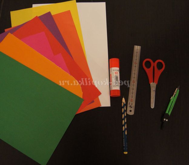 Матеріали для листівки: Лист картону, кольоровий папір двостороння, ножиці, клей, олівець, лінійка, циркуль.