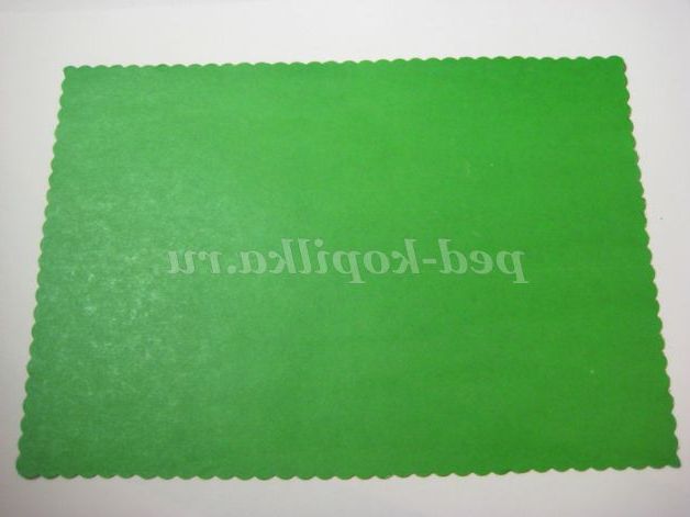 З кольорового картону вирізаємо фігурними ножицями прямокутник на 1 см більшого розміру, ніж наша заготовка з серцями