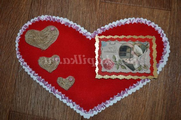 День Святого Валентина в Росію прийшов відносно недавно: з початку 90-х років XX століття, але наша країна досить швидко перейняла традицію дарувати коханим валентинки, зроблені своїми руками. У своєму майстер-класі, я хочу запропонувати один варіант оформлення такої листівки.
