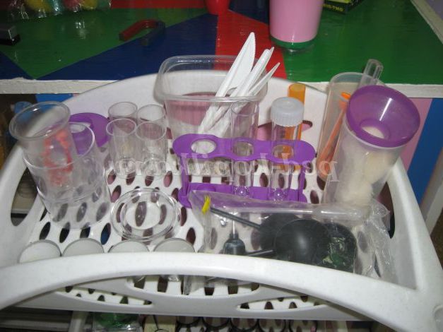 Запропонувати батькам придбати для дослідів: соломинки, піпетки, марлю, судини різної форми, клейонку.