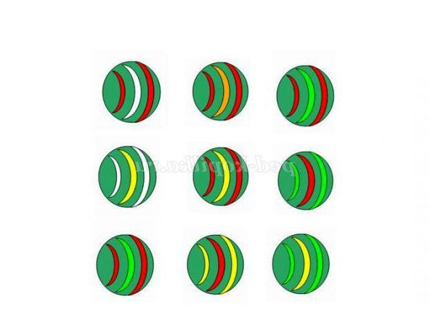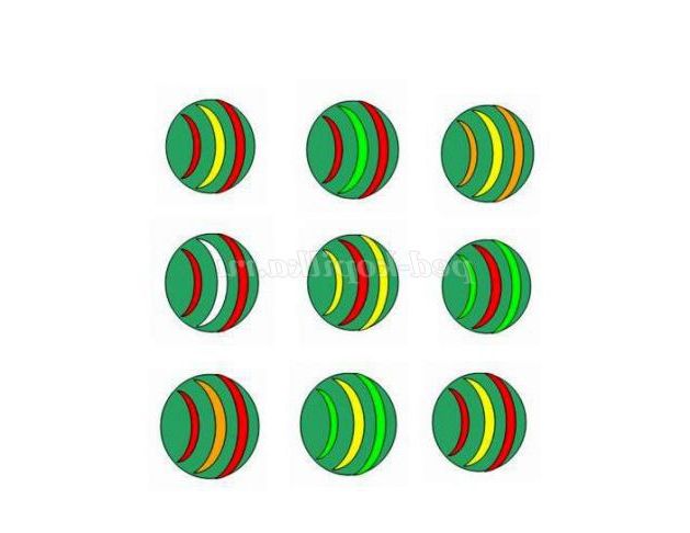 Командам пропонується розглянути картки із зображенням м'ячів, знайти два однакові м'ячі і обвести їх олівцем.