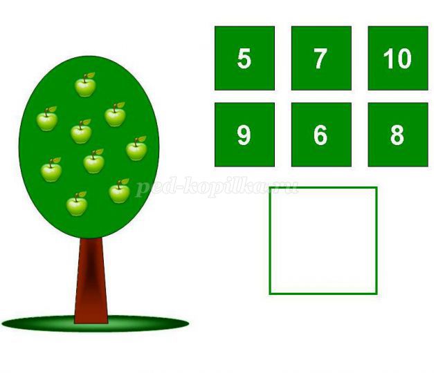 2) Скільки яблук росло на яблоньке. Порахуйте і підберіть цифру, що позначає кількість яблук на дереві.