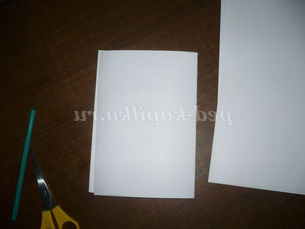Беремо аркуш паперу А-4, складаємо його навпіл(що б вийшло кілька однакових заготовок потрібно скласти докупи кілька аркушів паперу).
