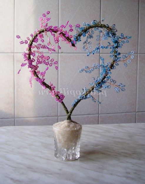 серце з бісеру, вироби з бісеру, день святого валентина вироби, бісерне дерево-серце
