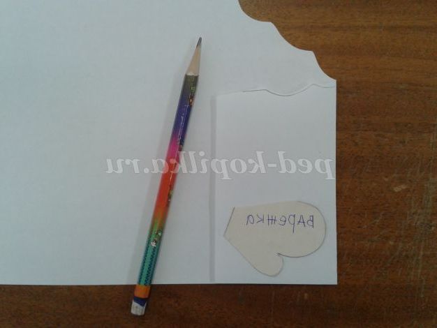 6.Складываем білу папір навпіл і обводимо шаблон рукавиць. Рукавички можна прикрасити сніжинками.