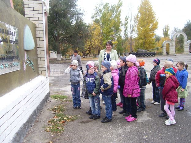 Екскурсоводом у цій екскурсії була моя напарниця Антоніна Володимирівна, а я фотографом. На площі знаходиться пам'ятник борцям-революціонерам, кінотеатр "Юність", музична школа. Потім ми пройшли в парк. Там ми побачили пам'ятник Матері і дитині,