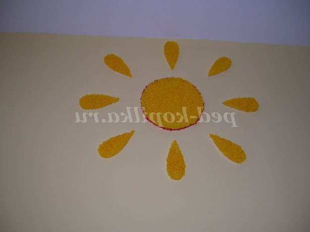 Зовсім недавно моя група була на капітальний ремонте.В групі поміняли всі вікна,підлоги,стіни пофарбовані в однотонні цвета.Групповая кімната була пофарбована в жовтий колір і мені потрібно було терміново оформити стены.Решила оформити свою групу в техніці торцювання.