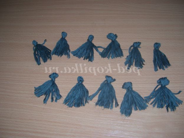 3. З пряжі робимо кісточки і приклеюємо їх по колу клеєм ПВА.