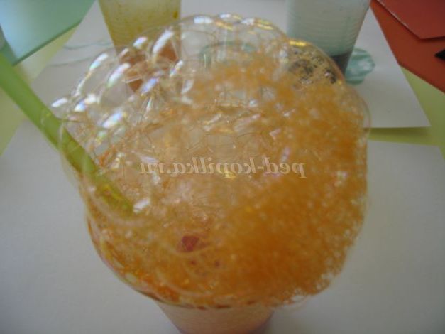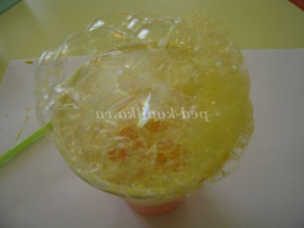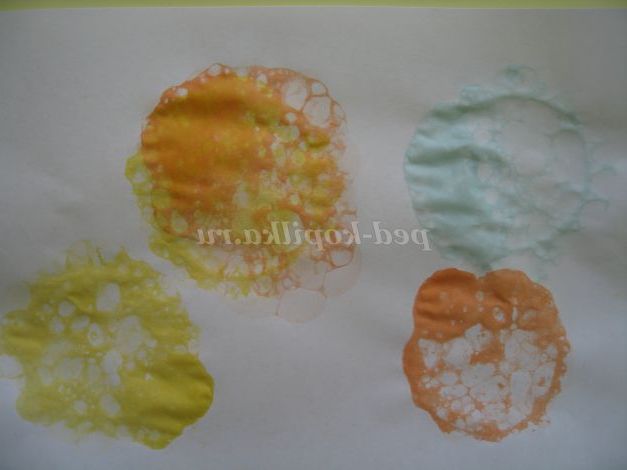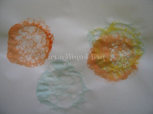 З використанням кольорових мильних бульбашок можна придумати й інші, не менш цікаві роботи.