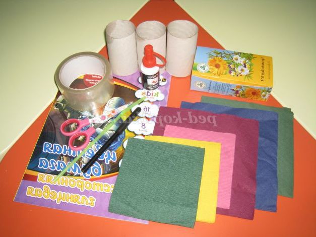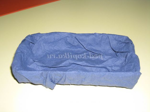 З великих серветок вирізати два квадрата 24х24 див. Отримані квадрати загорнути навколо циліндра, злегка змочити водою, щоб тримали форму. Залишити сохнути в теплі.