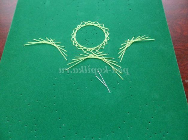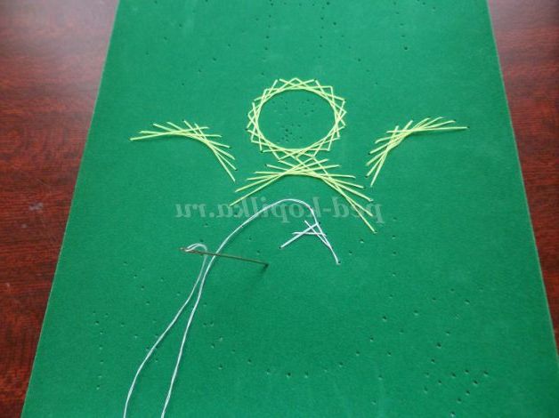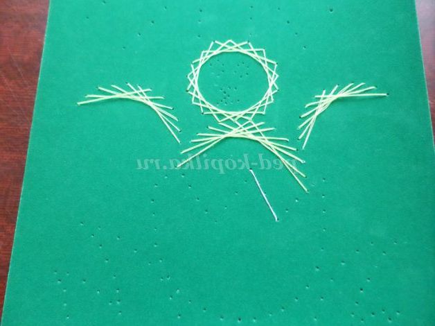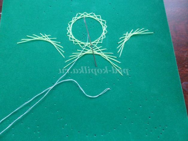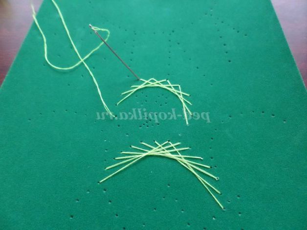 16. Травинки заповнюємо як кути, тільки нитку по сторонах кута повинна проходити зовні, щоб сформувати вигин.