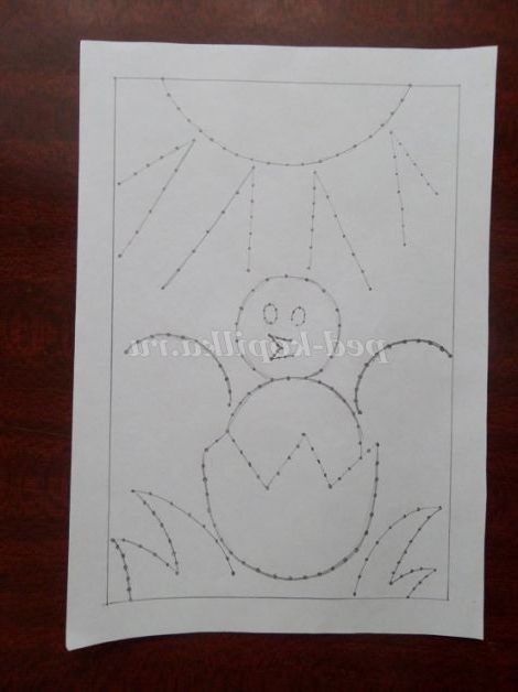 8.Голова курчати - окружність. Вона заповнюється аналогічним чином, тільки потрібно замкнути коло.