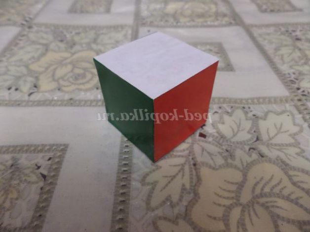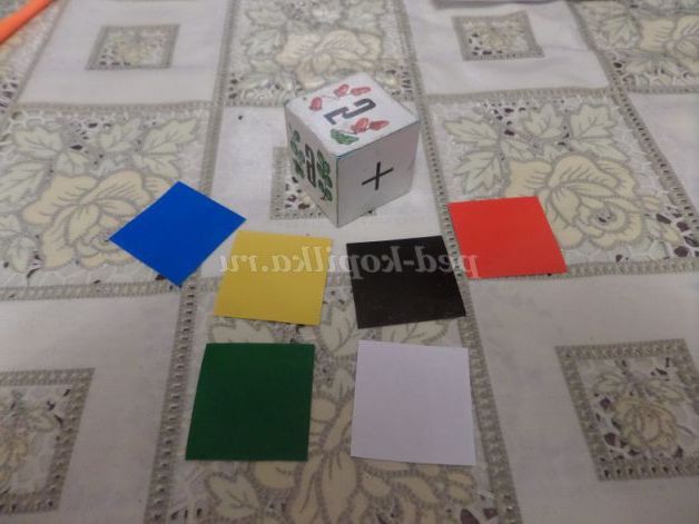 4. Вирізаємо з кольорового паперу 6 різнокольорових квадратів, розмір яких відповідає граням кубика.