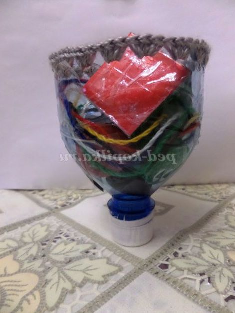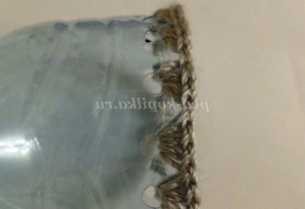 8. Щоб край обрізаної пляшки став безпечним для дітей, обвяжем його стовпчиком без накиду.