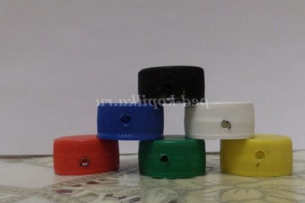 1. З допомогою нагрітого над запаленою свічкою шила проробляємо в пластикових кришках отвори.