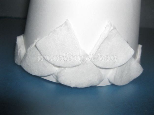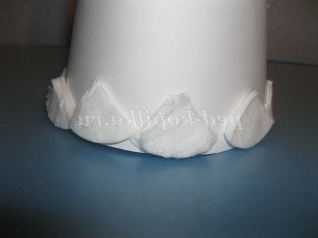 Наносимо на приготовані четвертинки дисків клей ПВА і наклеюємо в ряд на нижній край конуса.