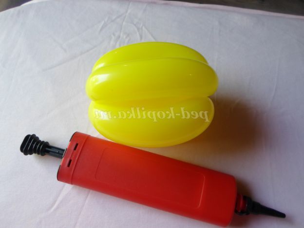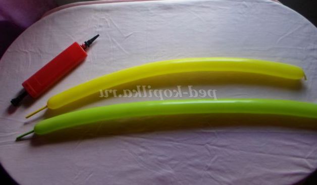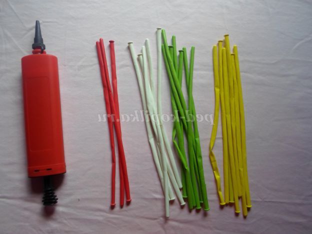 Для виготовлення поробки нам потрібні кулі для моделювання : 7 жовтих, 7 зелених, 5 білих, 3 червоних і насос для надування куль.