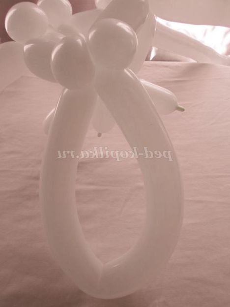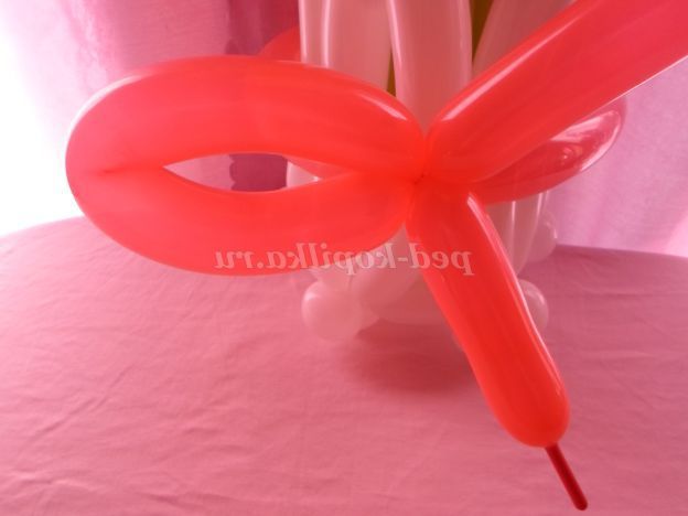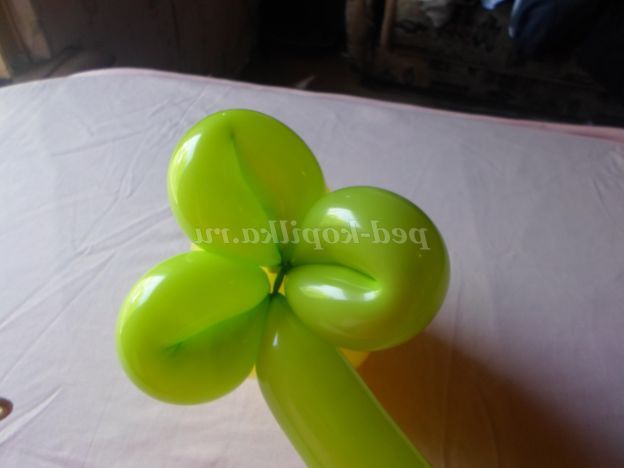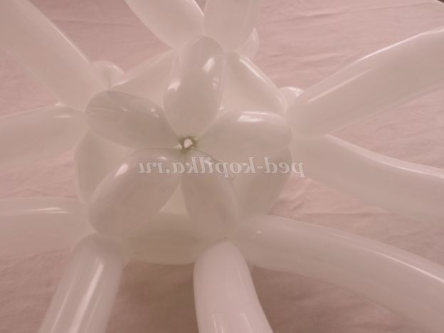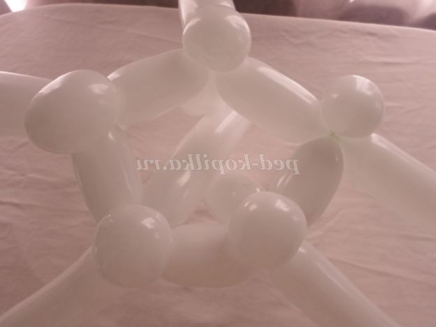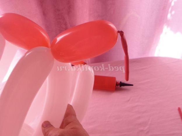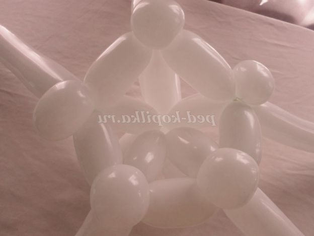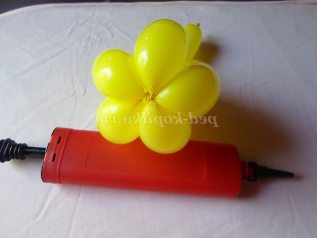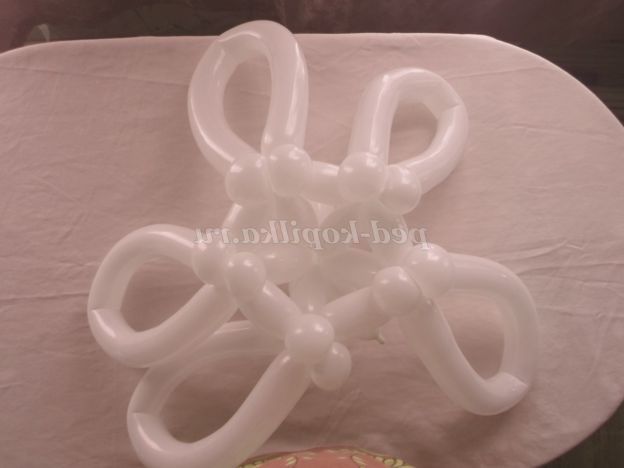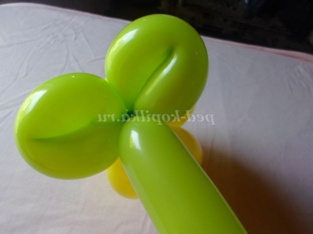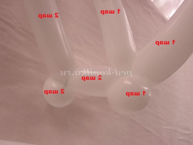 Робимо ще три такі стяжки, потім відміряємо 7-8 см перекручуємо, акуратно протикаємо куля, випускаємо повітря і на місці перекрута робимо вузлик.