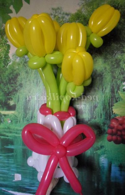Майстер клас покрокового виготовлення вироби з кульок для моделювання "Жовті тюльпани у вазі".