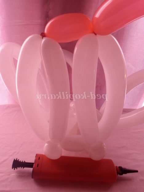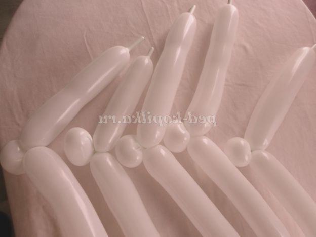 Приступаємо до виготовлення вази. Для цього насосом накачуємо 5 білих куль залишаючи надутими так само хвостики шириною в долоню.