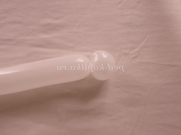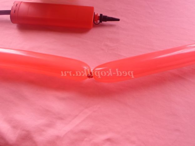 Далі беремо 2 кулі , на другому кулі на хвостику відступаємо 7-8 см від міхура і робимо перекрут на міхурі першого кулі (см фото)